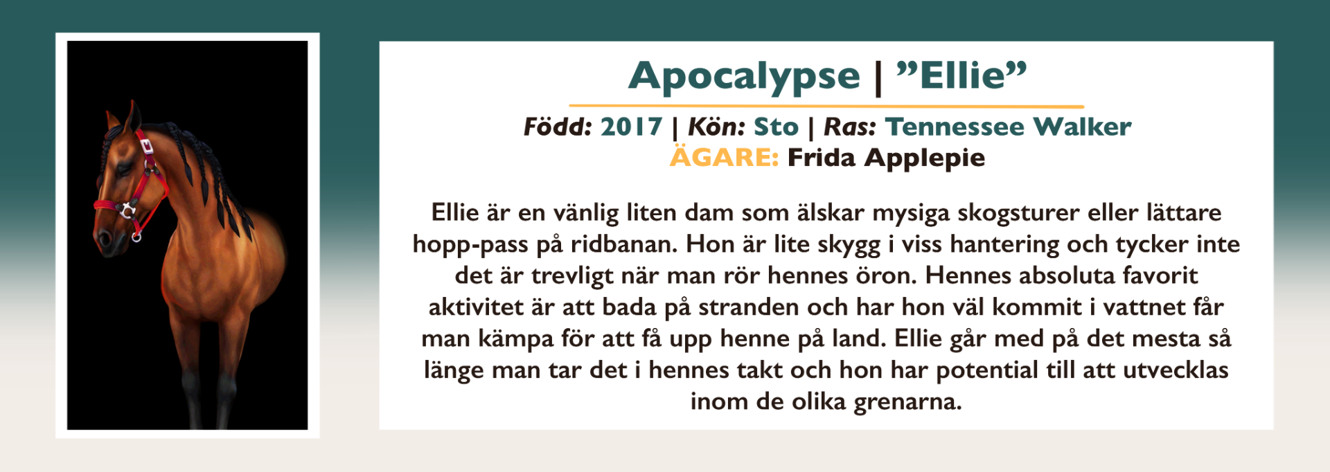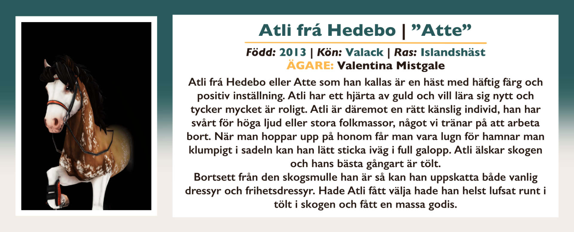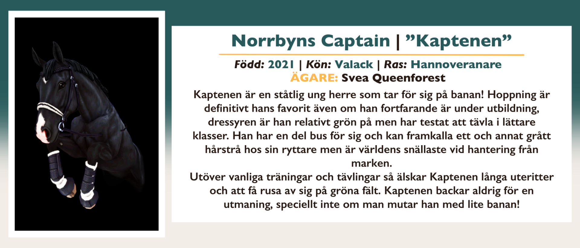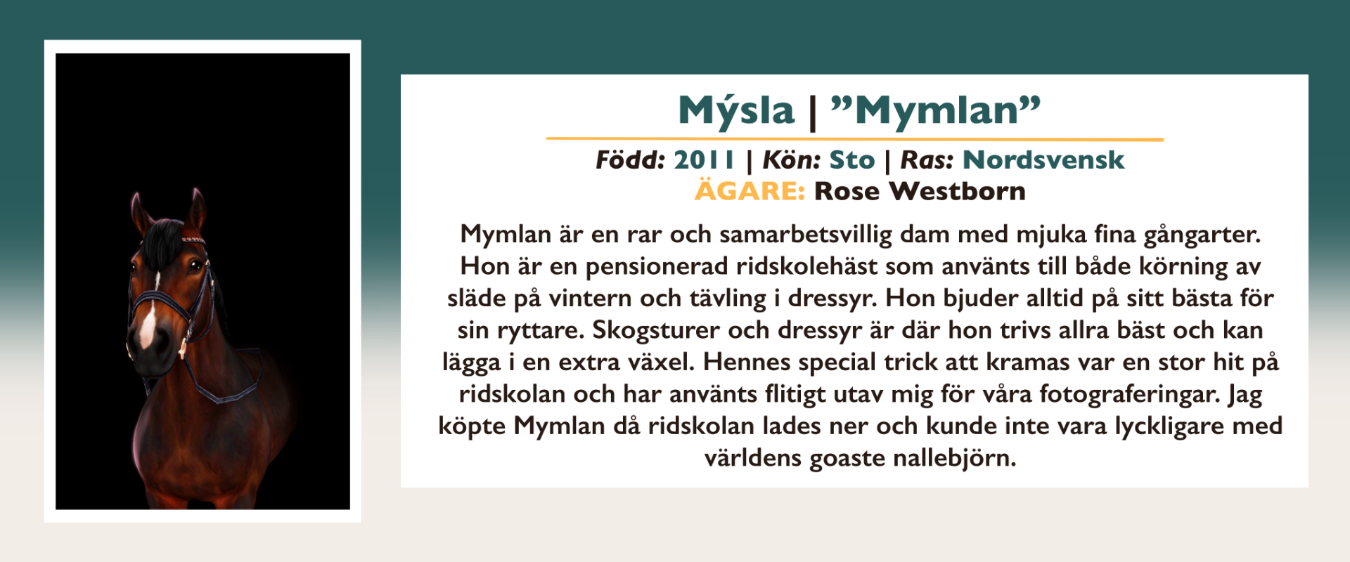 Här finns information om alla inackorderade hästar på Vittra Stallet.