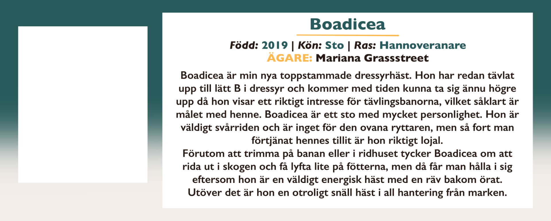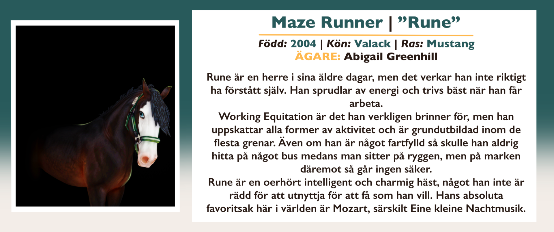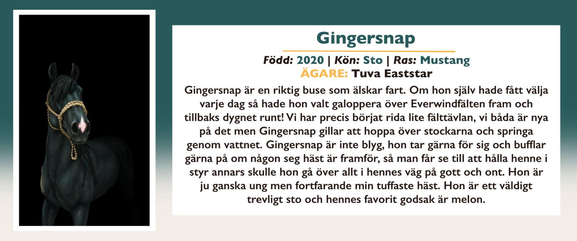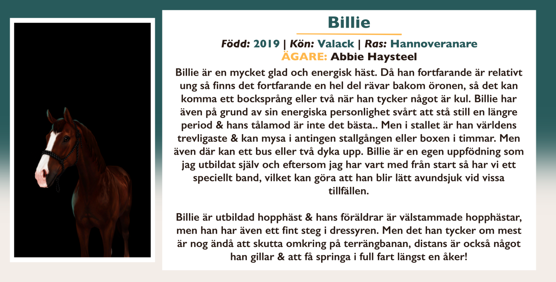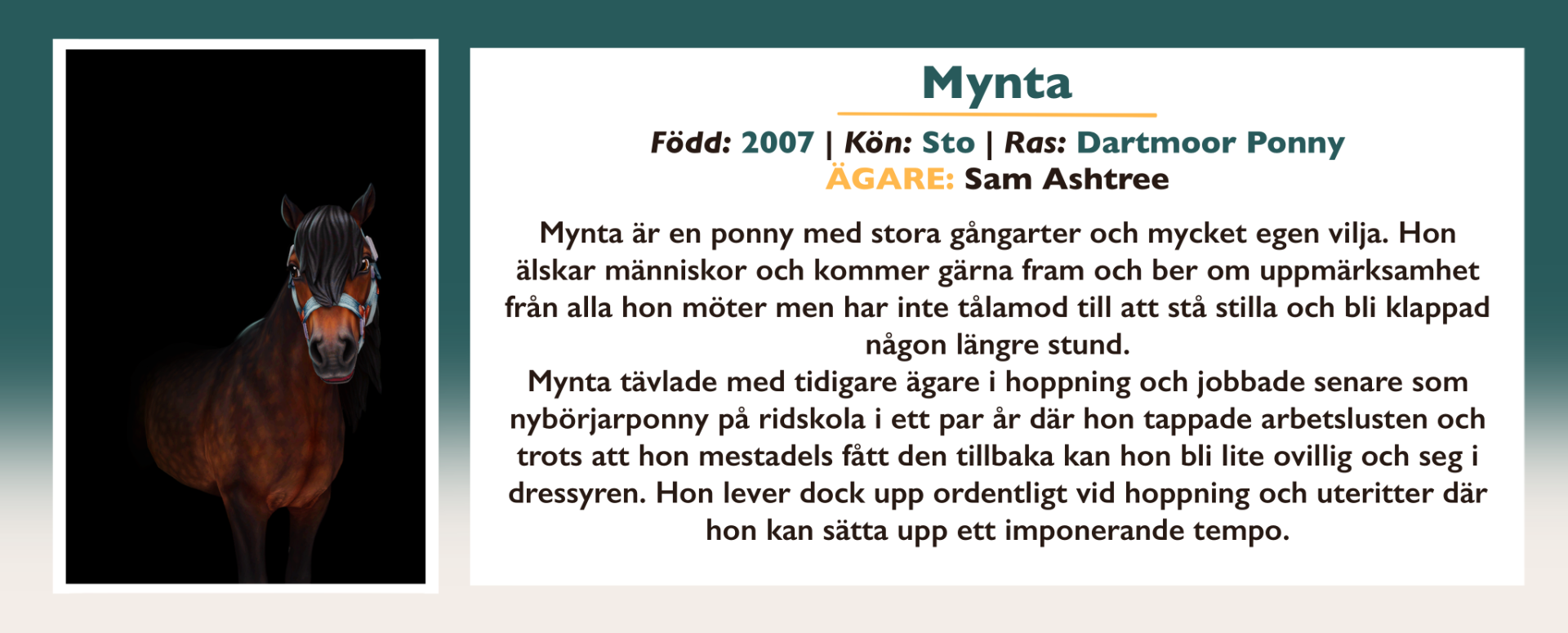 Här finns information om alla inackorderade hästar på Vittra Stallet.